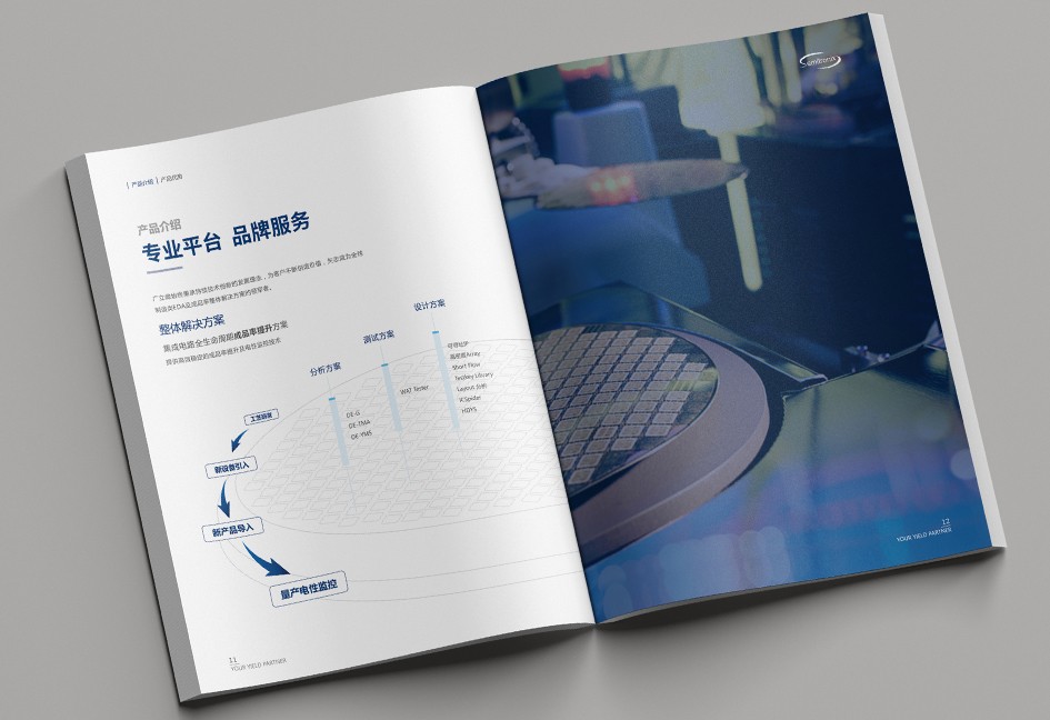 廣立微畫冊設計以“數之所指,芯之所向”為主題,分公司簡介、品牌優勢、公司歷程、產品路線、產品介紹、戰略發展、社會責任幾個單元依次展開,圖文并茂,簡潔大氣,科技感十足!