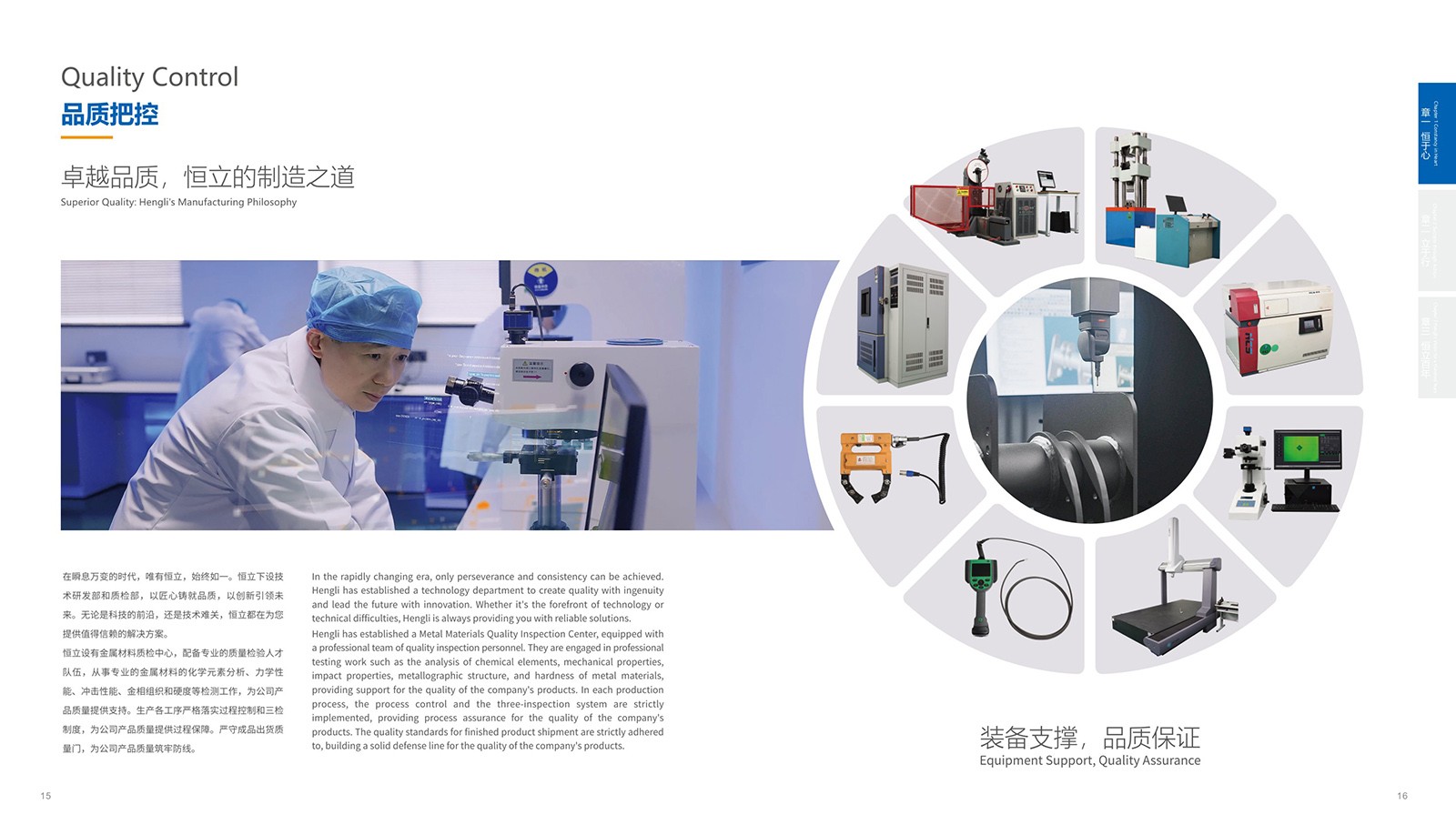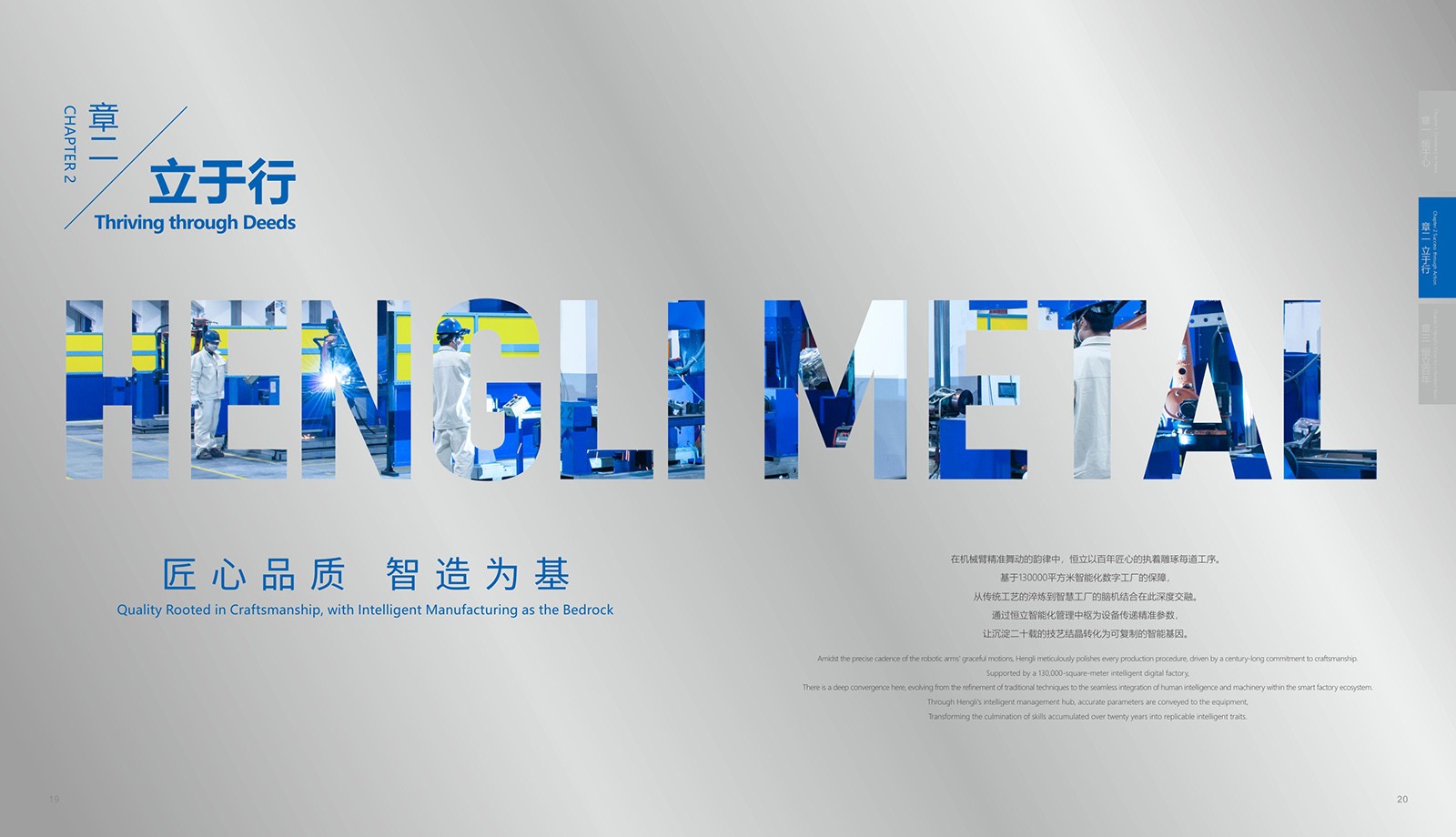 依據恒立的品牌色“恒立藍”為主色,加入印金和銀來體現(xiàn)金屬制造行業(yè)特色,采用科技感十足的設計,以科技藍與未來銀為主色調,搭配簡潔大氣的排版風格,使畫冊契合行業(yè)特點。
